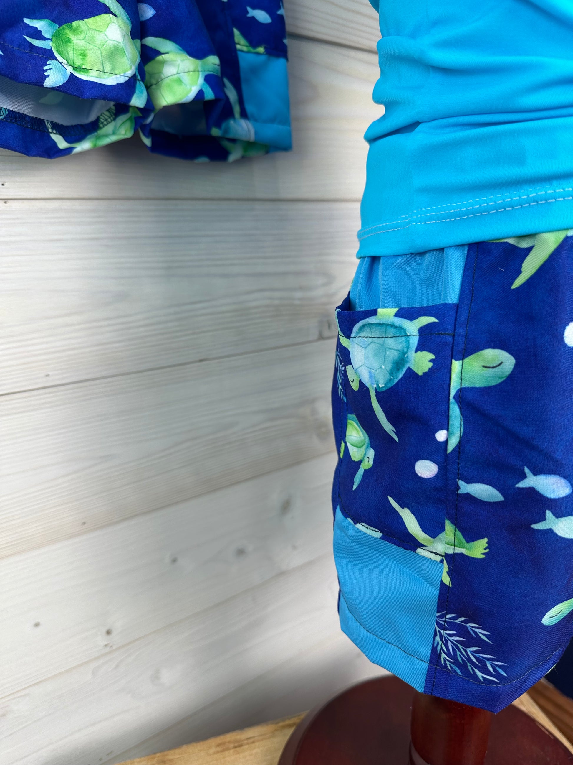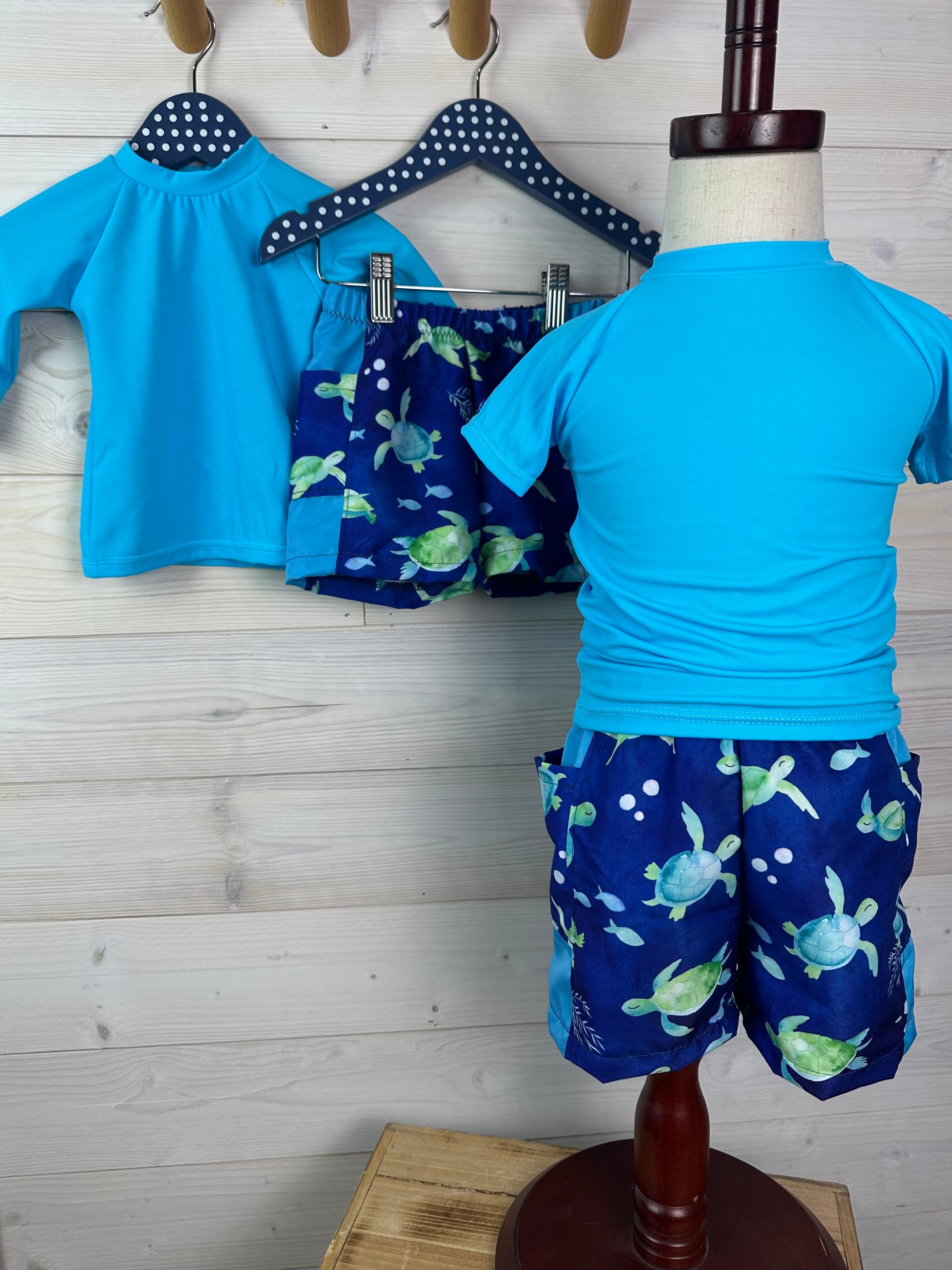 Get pool and vacation ready with this cute sea turtle swim outfit! This set features: